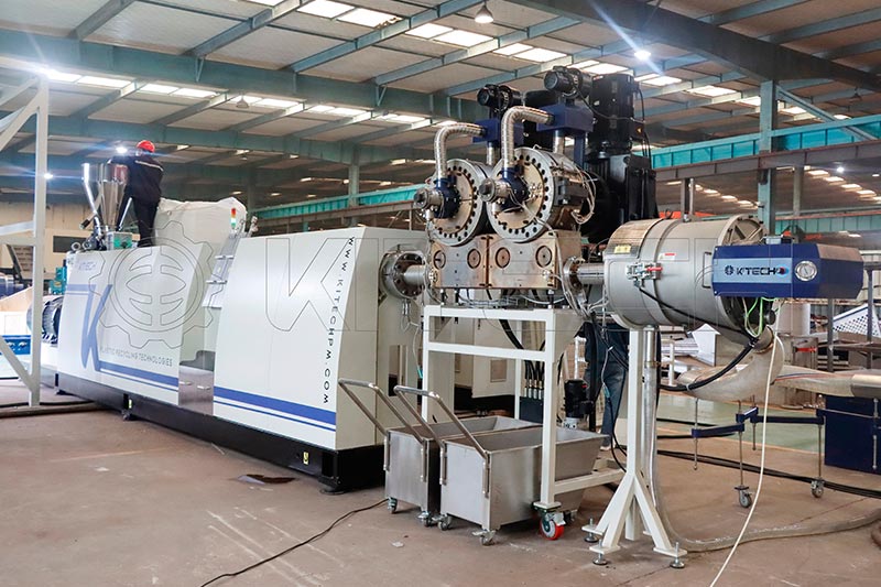 The Kitech KSP120 extruder, with its 160 kW motor and heavy-duty gearbox, is built for this challenge. Achieving a stable 400 kg/h output with low pressure parameters and 80% motor load, it proves to be a highly efficient and reliable solution for high-viscosity HDPE recycling.