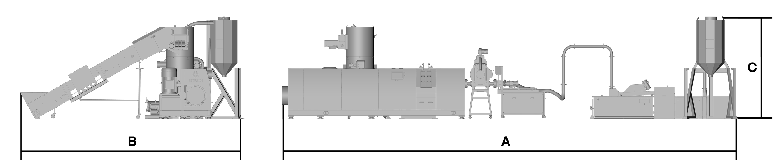 rigid materials recycling. Equipped with laser filter and underwater pelletizer providing a
